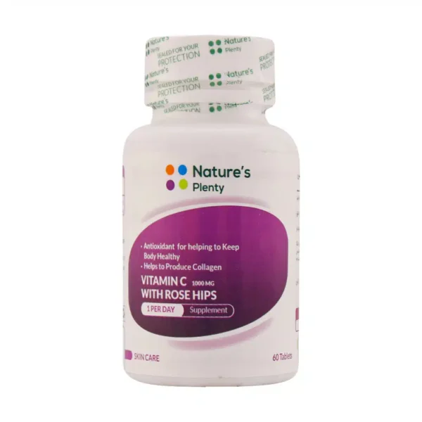 قرص ویتامین C 1000 میلی گرم و رز هیپس نیچرز پلنتی 60 عددی