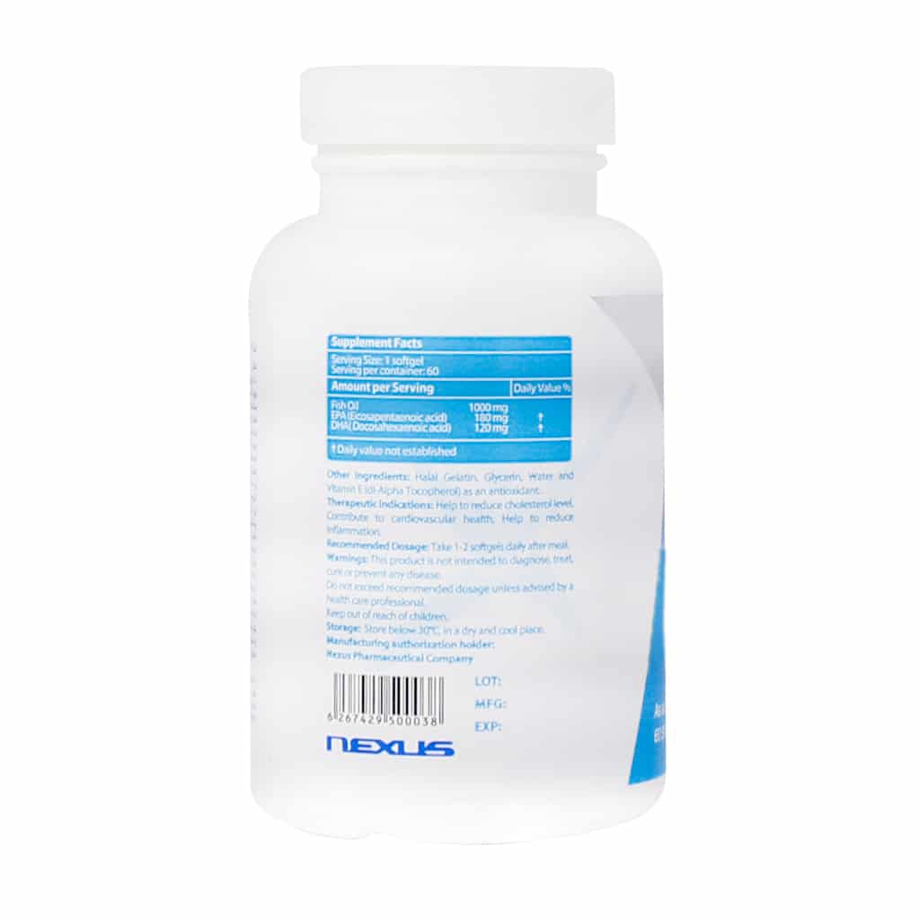 هر سافت ژل امگا3 نکستایل حاوی ۱۰۰۰ میلیگرم روغن ماهی است که شامل مقادیر قابل توجهی از دو نوع اسید چرب ضروری یعنی EPA (Eicosapentaenoic Acid) و DHA (Docosahexaenoic Acid) میباشد — این اسیدها نقش کلیدی در عملکرد طبیعی قلب، مغز و سایر بخشهای بدن دارند.