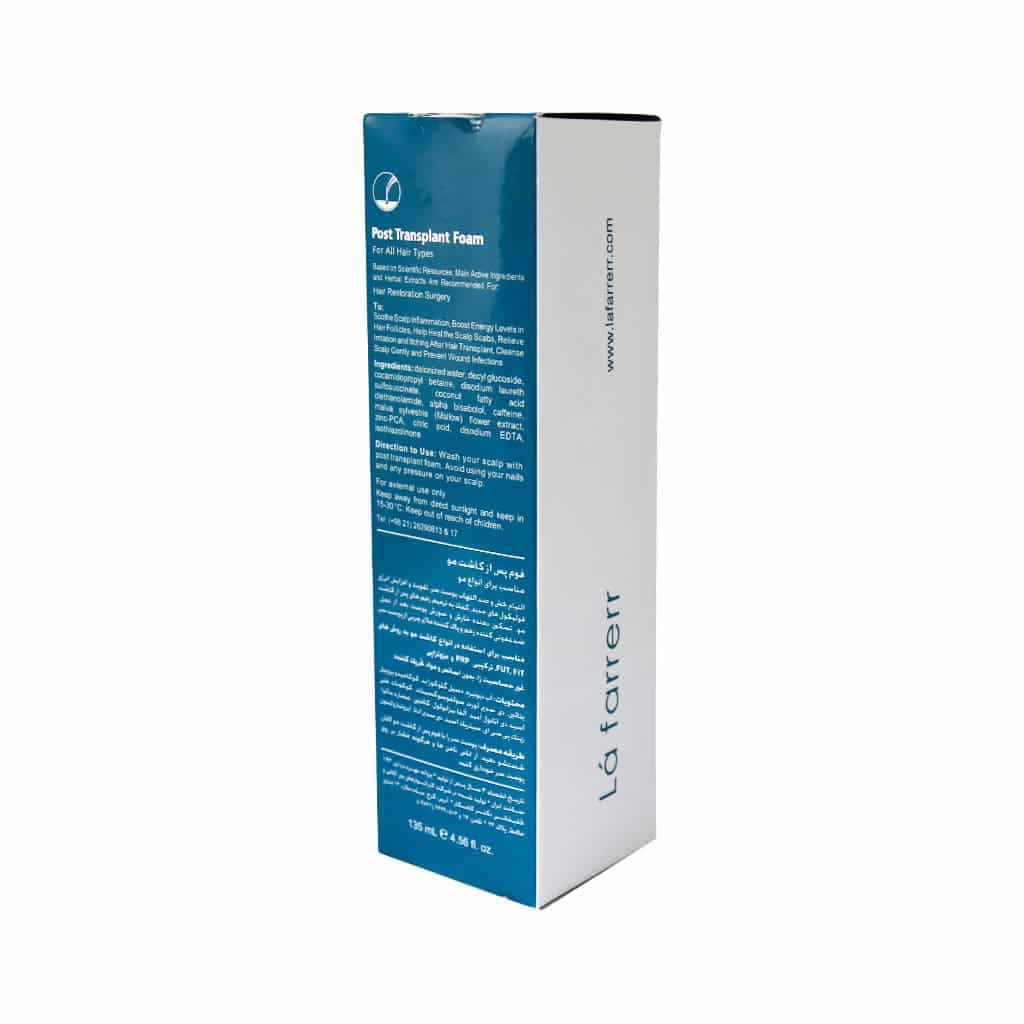 فوم پس از کاشت مو لافارر یک محصول شوینده مخصوص است که طراحی شده برای مراقبت از پوست سر و فولیکول‌های تازه کاشته‌شده بعد از عمل پیوند مو. این فوم هم ملایم است، هم ترمیم‌کننده؛ به طوری که پس از باز شدن پانسمان می‌توان از آن استفاده کرد تا پوست سر را پاکیزه کرد بدون اینکه به فولیکول‌ آسیب وارد شود.