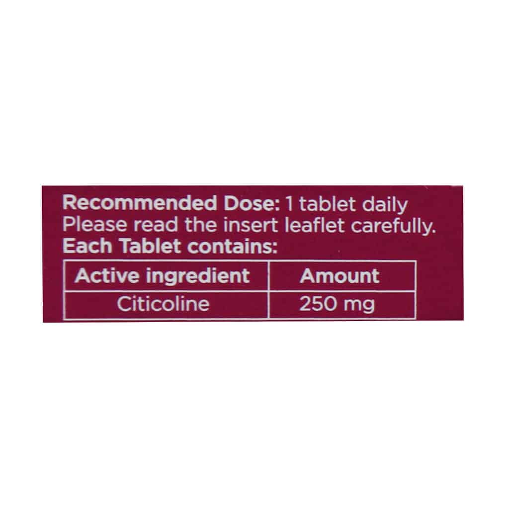 سیتیکولین (Citicoline) — ۲۵۰ میلیگرم–پیشساز فسفاتیدیلکولین در غشاء نورونی، افزایش تولید استیلکولین، محافظت عصبی، بهبود حافظه و تمرکز.