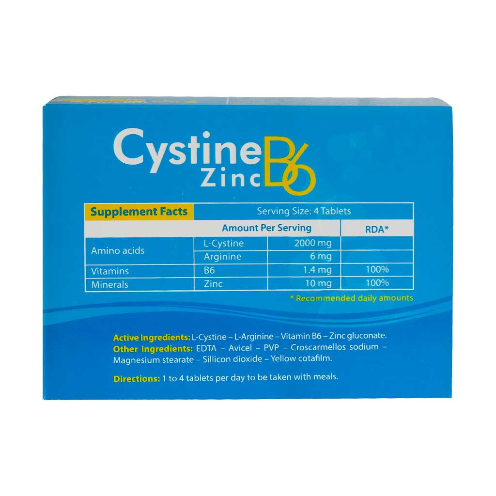 ویتامین B6 در این ترکیب بسیار مهم است، چون به جذب بهتر سیستئین کمک میکند و شرکت سازنده مقدار ۱.۴ میلیگرم در هر مصرف را دارد که معادل ۱۰۰٪ نیاز روزانه ویتامین B6 است.