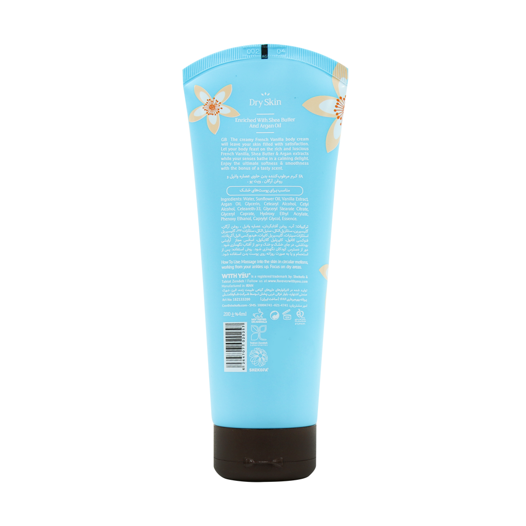 لوسیون بدن «وانیل و روغن آرگان» از برند With You، ترکیبی لوکس برای تغذیه و مرطوبسازی عمیق پوست بدن است. این محصول با بهرهگیری از روغن آفتابگردان، روغن آرگان و عصاره وانیل، پوست را نه تنها نرم و لطیف میکند بلکه رایحهای گرم، شیرین و جذاب بر روی بدن باقی میگذارد. لوسیون بافتی سبک دارد و به سرعت جذب میشود، بدون احساس چربی یا سنگینی پس از استفاده.