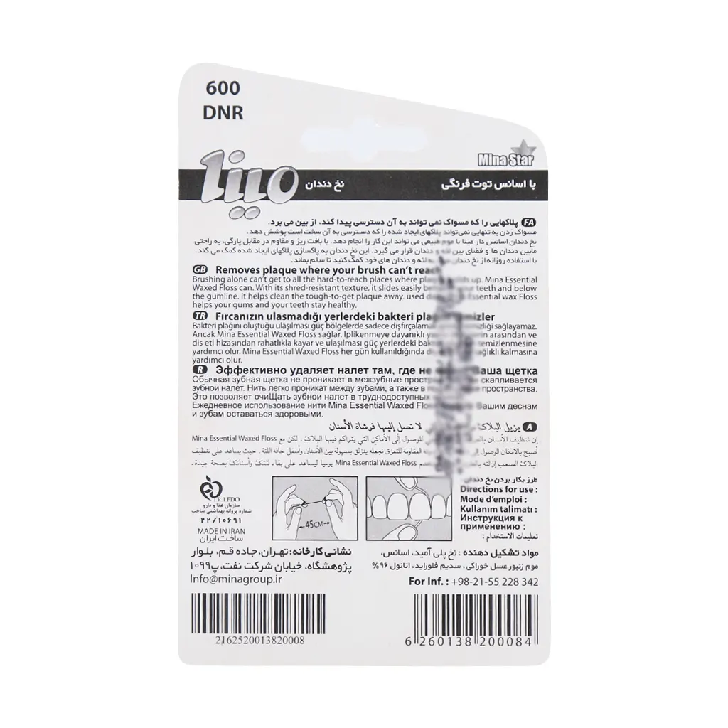 نخ دندان نازک نعنایی مینا (Mina Dental Floss) یک محصول بهداشتی کاربردی و ضروری برای حفظ سلامت دهان و دندان است که بهطور ویژه برای پاکسازی مؤثر فواصل بین دندانی طراحی شده است. این نخ دندان با ضخامت کم و ساختار مقاوم خود، بهراحتی در فضاهای تنگ بین دندانها حرکت میکند و باقیماندههای مواد غذایی، پلاکهای میکروبی و آلودگیهایی را که مسواک به آنها دسترسی ندارد، بهطور مؤثر حذف میکند.