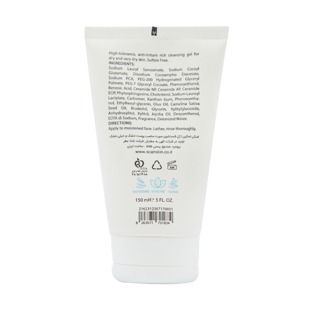 ژل شستشوی صورت اسکن اسکین مخصوص پوست خشک یک پاک‌کننده ملایم است که طراحی شده تا آلودگی‌ها و باقی‌مانده آرایش را بدون آسیب به سد محافظ پوست از بین ببرد. این ژل با فرمول سبک و فاقد ترکیبات شدید شوینده، رطوبت طبیعی پوست را حفظ می‌کند و پس از شست‌وشو پوست را کشیده یا خشک نمی‌کند.