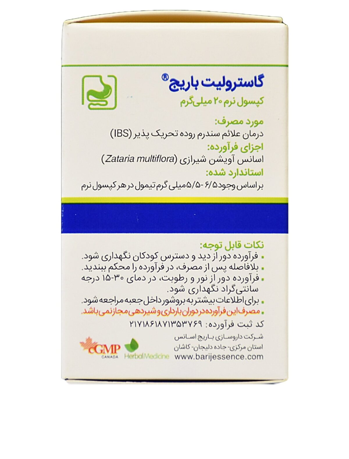 ویژگی های کپسول نرم گاسترولیت باریج اسانس 30 عددی: